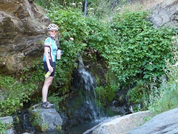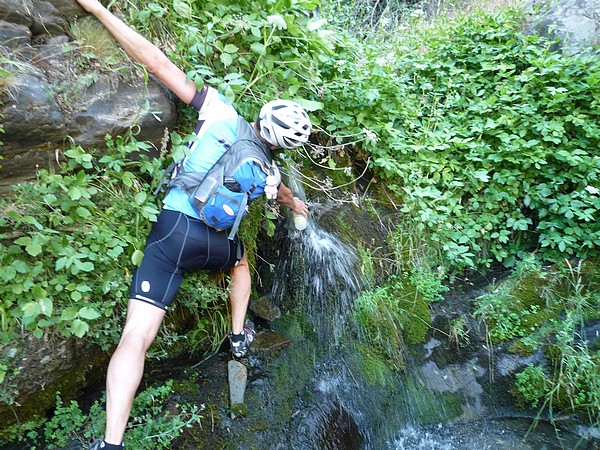 Recht bald kommt dann auch schon die nächste Wasserstelle: in dem Fall ein Bach mit sehr sauberen Wasser "aus den hohen Bergen", das man bedenkenlos trinken kann.
