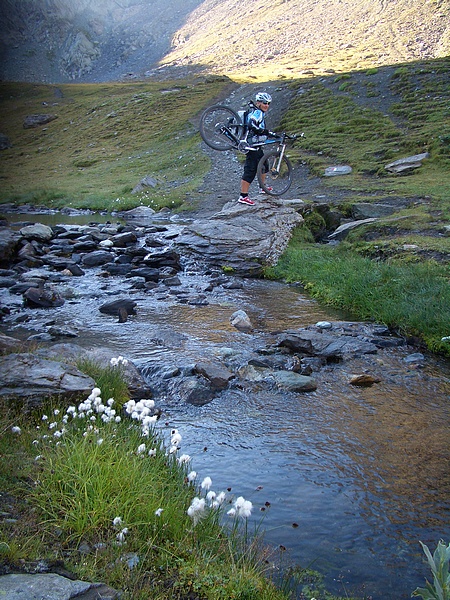 Aber wenigstens hatten wir ja am Vorabend jeder ein Lunchpaket für je acht Euro bestellt. Nach einem erwartungsfrohen Blick in die Tüten, beschlossen wir jedoch, uns zukünftig wieder selbst unsere Brotzeit im Alimentari zusammenzustellen: zwei weitere Scheiben von dem alten Weißbrot, ein kleines Eckchen abgepackter Käse, zwei eingerollte Scheiben Wurst, eine Orangensafttüte, ein hart gekochtes Ei, fünf Trockenpflaumen und eine kleine Tüte Chips... aber egal, später oben in der Sonne am Paß haben wir den Tüteninhalt dennoch genossen und waren froh, überhaupt was zu futtern zu haben...